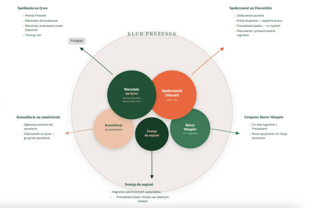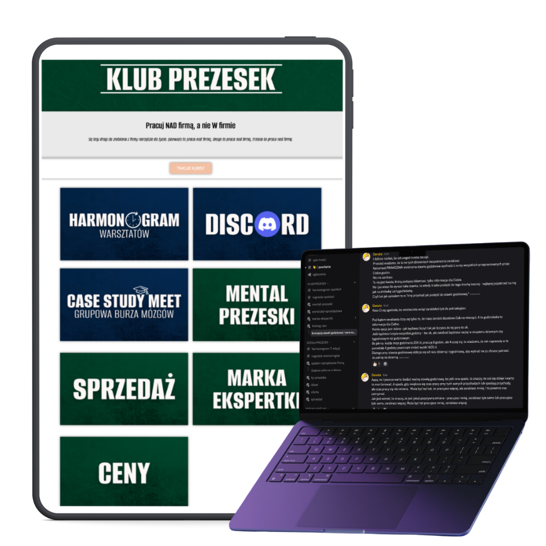 Wejdź do KLUBU PREZESEK i dołącz do przestrzeni dla właścicielek firm, które mają dość uczenia się nowych rzeczy i chcą w końcu zarabiać na swojej wiedzy i doświadczeniu.