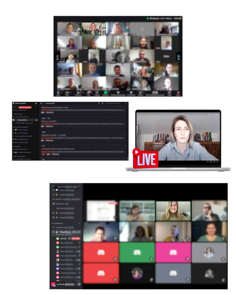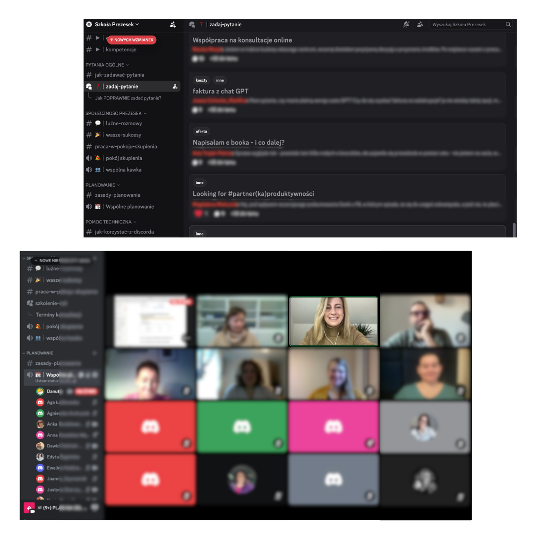Co tydzień widzimy się na wspólnym planowaniu i podsumowaniu tygodnia, wspólnej Prezeskowej kawce oraz kilka razy w tygodniu na wspólnej pracę w pokoju skupienia na Discordzie.