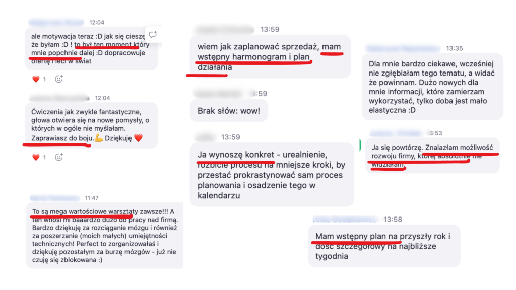 Każde z tych spotkań może realnie przełożyć się na wyniki finansowe w twoim biznesie, bo planujesz konkretne akcje sprzedażowe, tak abyś każdego dnia wiedziała co dokładnie robić.
