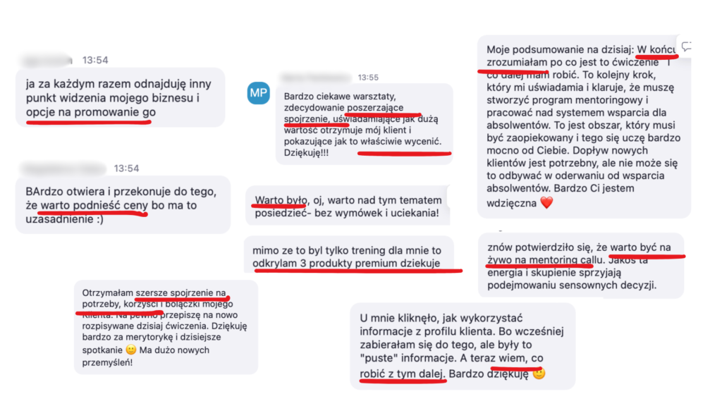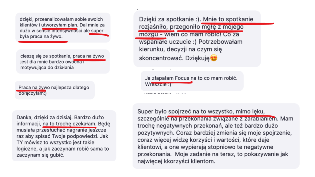 Każde z tych spotkań może realnie przełożyć się na wyniki finansowe w twoim biznesie, bo przestajesz zaniżać ceny i zarabiasz adekwatnie do swojej wiedzy i doświadczenia.